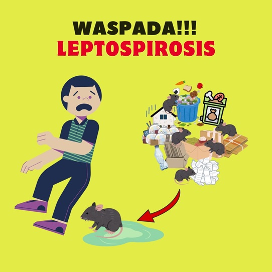 Penyakit Leptospirosis disebabkan oleh bakteri Leptospira Sp yang hidup bertahun-tahun di ginjal binatang-binatang yang dapat menyebabkan Leptospirosis. Bakteri Leptospira dapat keluar bersama dengan urine/kencing binatang sehingga mencemari air, tanah, makanan, atau barang-barang di sekitar kita. Bakteri Leptospira dapat menular ke manusia melalui kontak kulit manusia yang terluka dengan urine binatang pembawa bakteri leptospira, kontak kulit dengan air/tanah/makanan/barang-barang yang terkontaminasi urine binatang pembawa bakteri leptospira, dan mengonsumsi makanan atau minuman yang terkontaminasi urine binatang pembawa bakteri leptospira. Gejala Leptospirosis mirip dengan penyakit influenza yaitu, demam, sakit kepala, flu, mual, muntah, diare, sakit perut namun terkadang juga disertai dengan bengkak di tangan/ kaki dan kulit berwarna kuning.